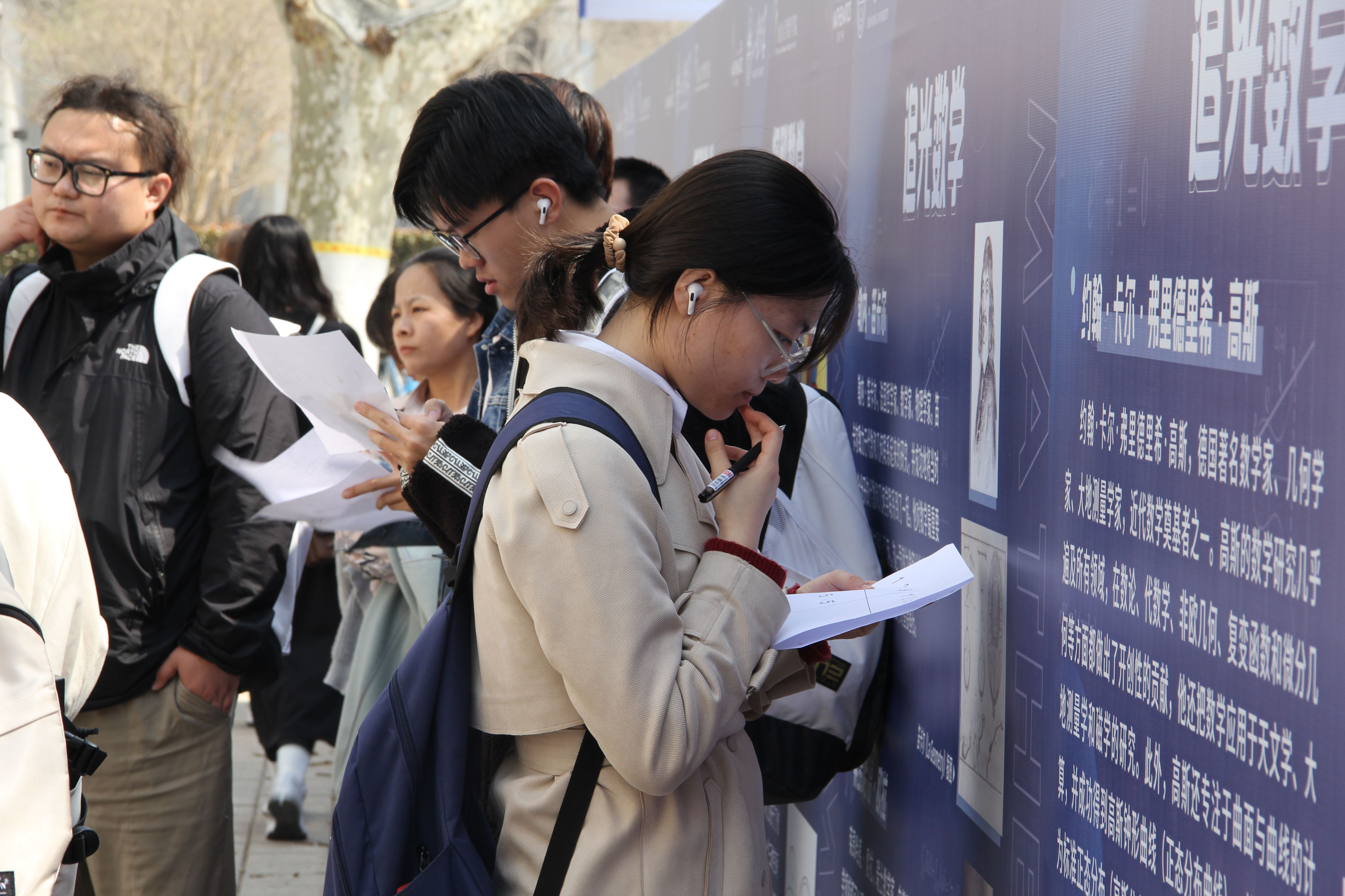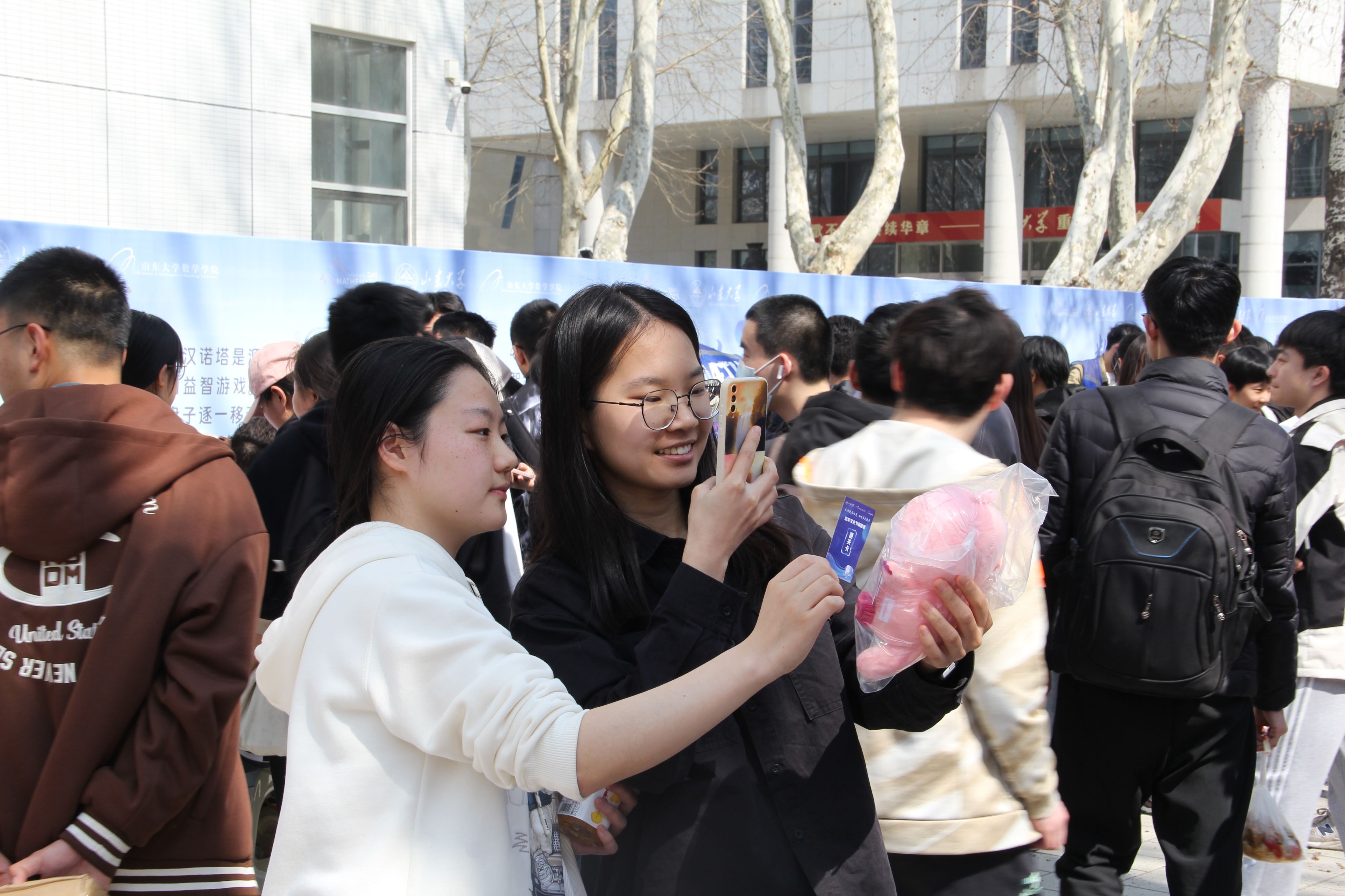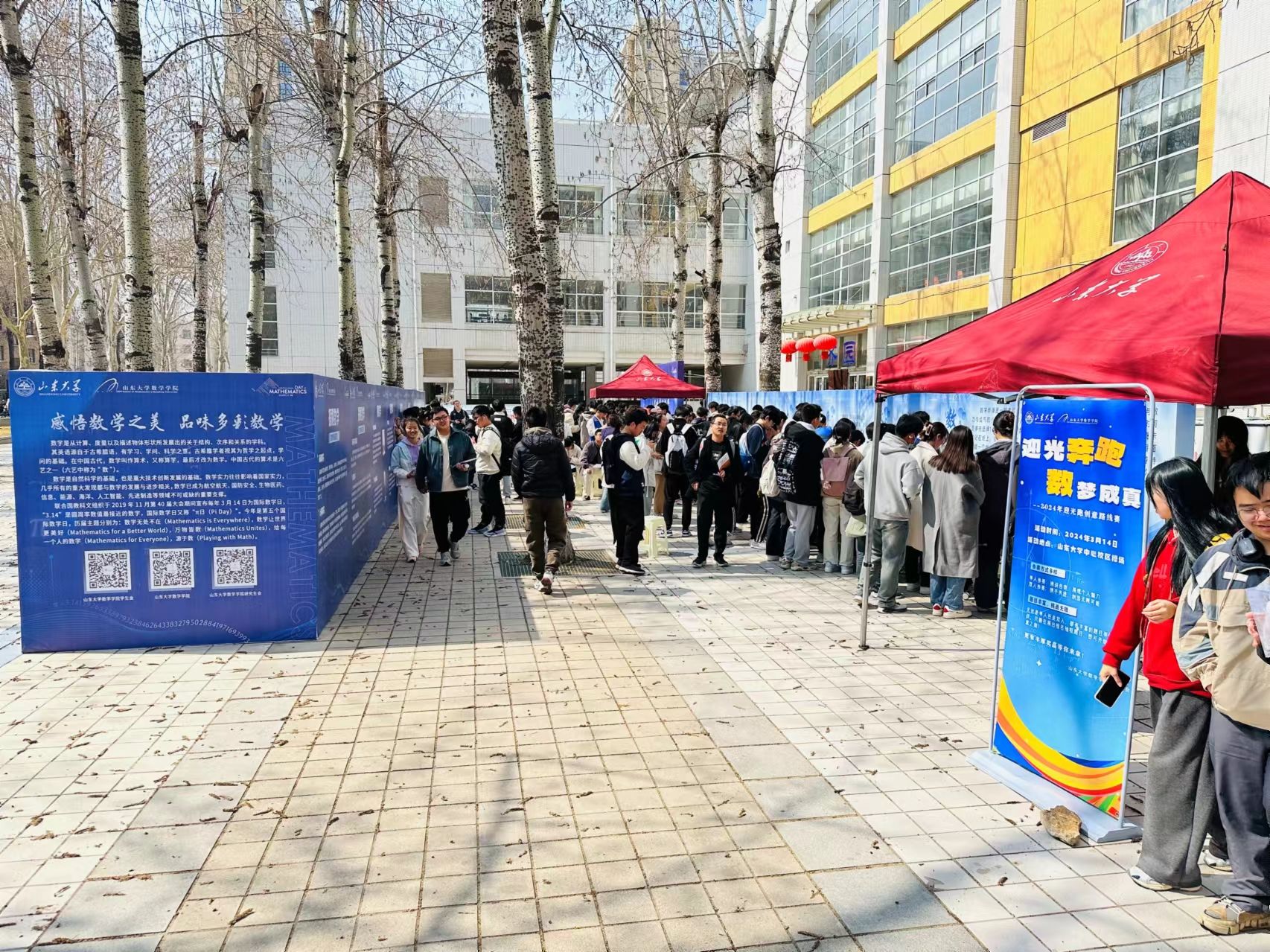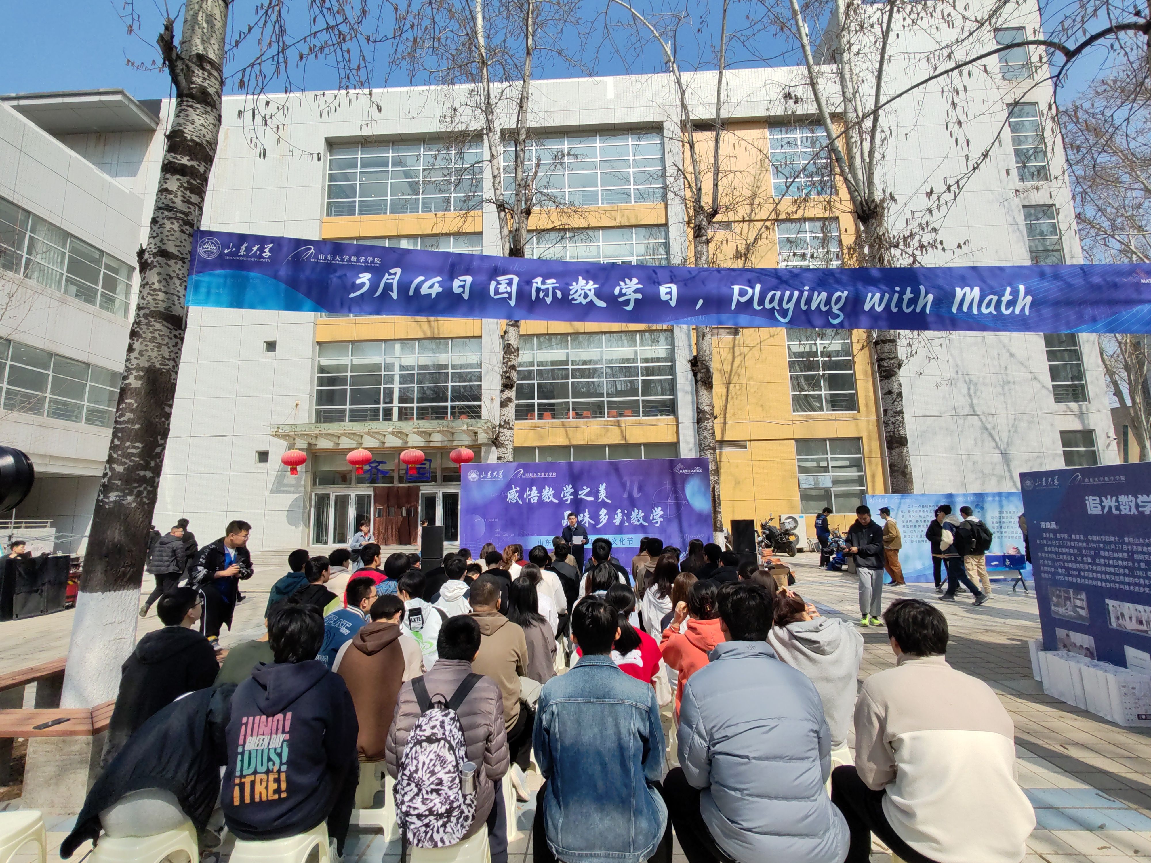开幕式现场设置了数学游园会和数学文化展。师生们体验鲁班锁、华容道、九连环等趣味游戏,在思考和欢笑中提升数学思维,感受数学魅力;观看数学文化展,探秘著名猜想,领略大家风采,追寻数学之美,思考数通万物。游玩师生络绎不绝,现场气氛热烈,欢乐π送不停。