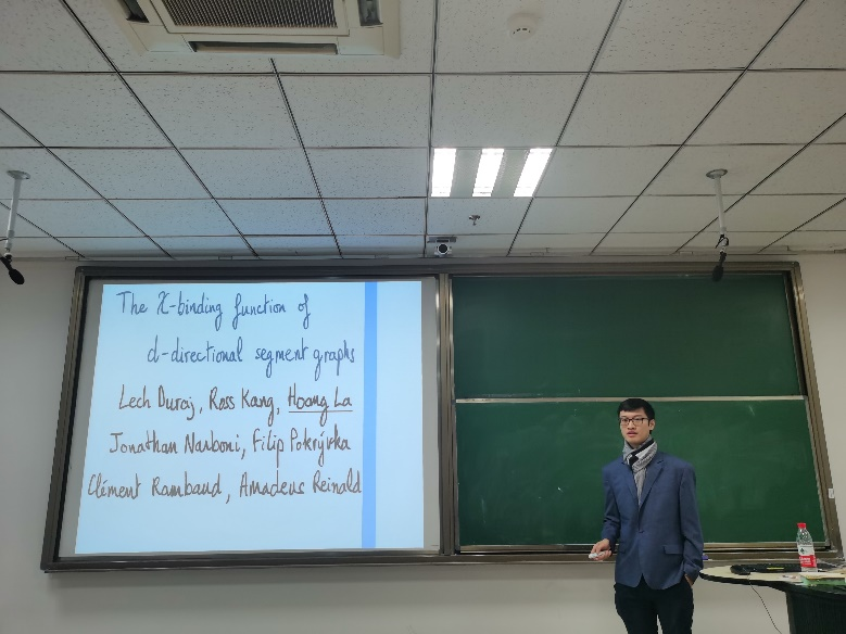 Johanne Cohen、李皓、Hoang La分别以《Tropical Structures in Vertex-Colored graph》、《Hamiltonian line graphs》、《The -binding function of d-directional segment graphs》为题作学术报告。双方举行学术研讨会,李皓教授详细介绍法方相关情况,参会师生分享公开性问题并展开了热烈讨论,有助于拓展国际科研合作网络,用高水平科学研究促进高质量高等教育发展。