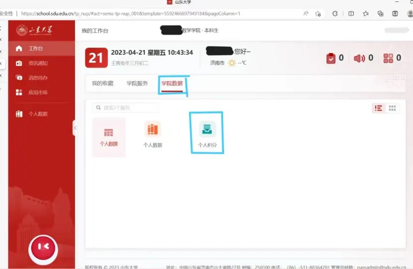 TapTap点点信息化公共服务平台——学院信息服务——学院数据——个人积分