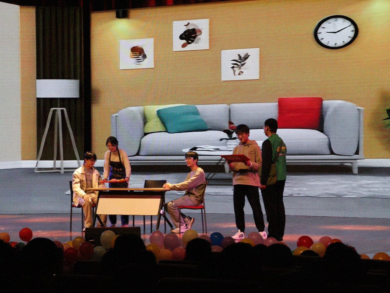 晚会以TapTap点点街舞协会带来的舞蹈《One World》拉开序幕,动感的节奏、炫酷的舞姿瞬间点燃了现场气氛。在第一篇章“群新璀璨,数海扬帆”中,数彩飞扬合唱团演唱的《我喜欢》将日常生活的温情与美好展现的淋漓尽致;快板《数星耀山大》巧妙地将数学元素融入传统艺术形式,展现了学校悠久历史和数学人的风采智慧;话剧《成人礼》通过生动的表演,讲述了大学生从青涩走向成熟的心路历程;本科新生辅导员张枫林深情演唱的《父亲写的散文诗》,诠释了父爱的伟大和温暖。
