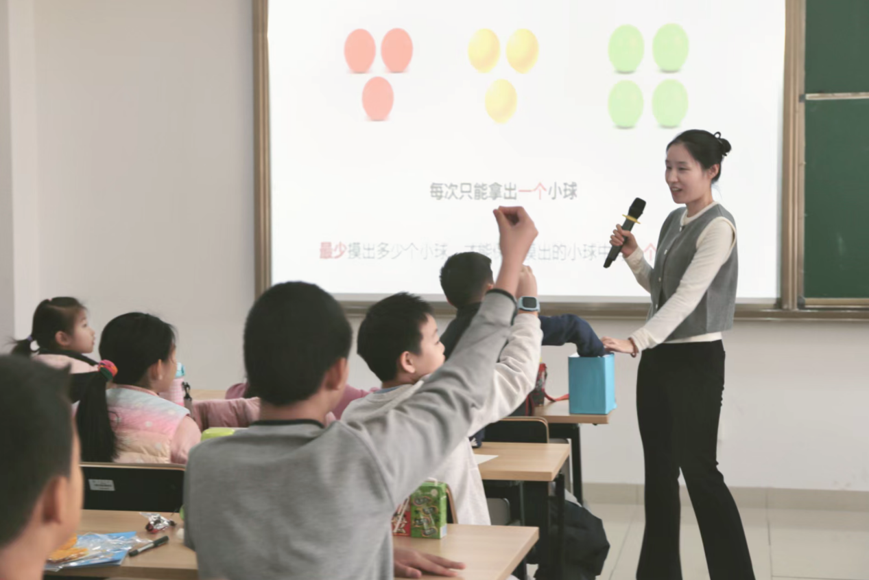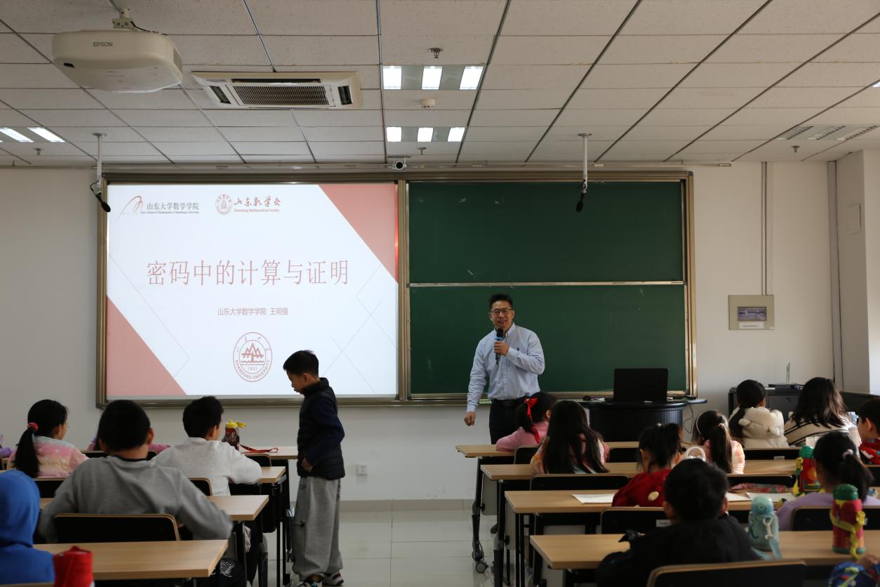 讲座环节,王明强教授带来了题为“密码中的计算与证明”的精彩报告。他通过“百万富翁”“乘法运算的规律”等生动的案例和有趣的互动,向小朋友们讲解了机密计算、零知识证明等知识,系统介绍了TapTap点点密码学科的发展历史,让小朋友们在轻松愉快的氛围中感受到数学的魅力。谭蕾副教授开展题为“我们身边的数学——抽屉原理及应用”的科普讲座。她通过日常生活中的实例,深入浅出地讲解了抽屉原理及其应用,激发了小朋友对生活中数学问题的思考,启迪了大家的数学智慧。