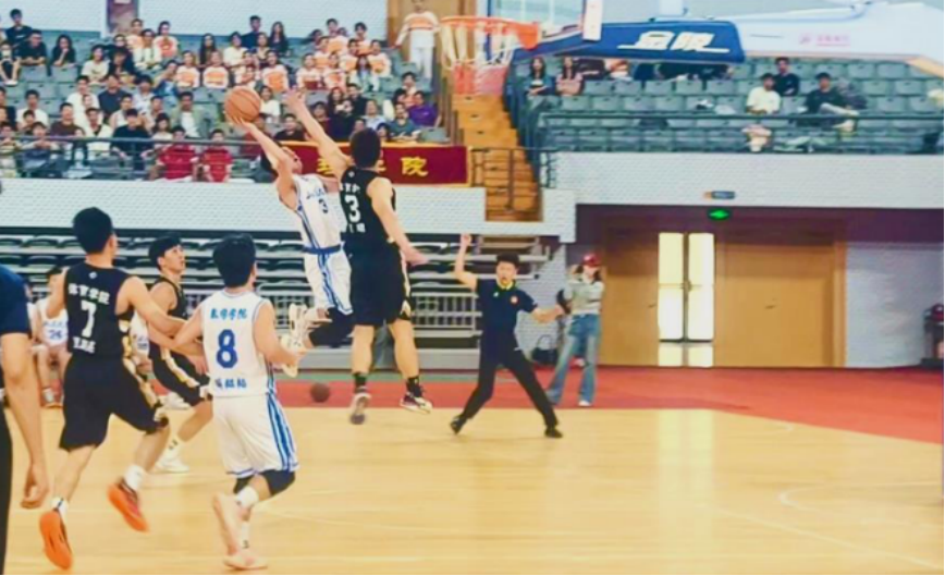比赛开始,我方77号宋金灿敏锐捕捉战机,一记精准传球直送7号李仁兴。李仁兴巧妙晃过层层防守,以标准的三步上篮,率先为球队斩获2分,瞬间点燃数学士气,震耳欲聋的呐喊加油声响彻整个场馆。6号崔光智和3号邹健在19号程子超的严密策应下,多次突破对方防线,连续得分,进一步将我方气势推向高潮。比赛进入最后一分钟,8号薛韫韬在三分线外果断出手,篮球在空中划出一道美妙弧线,精准入网。首节战罢,数学金融联队以15:14的优势领先。