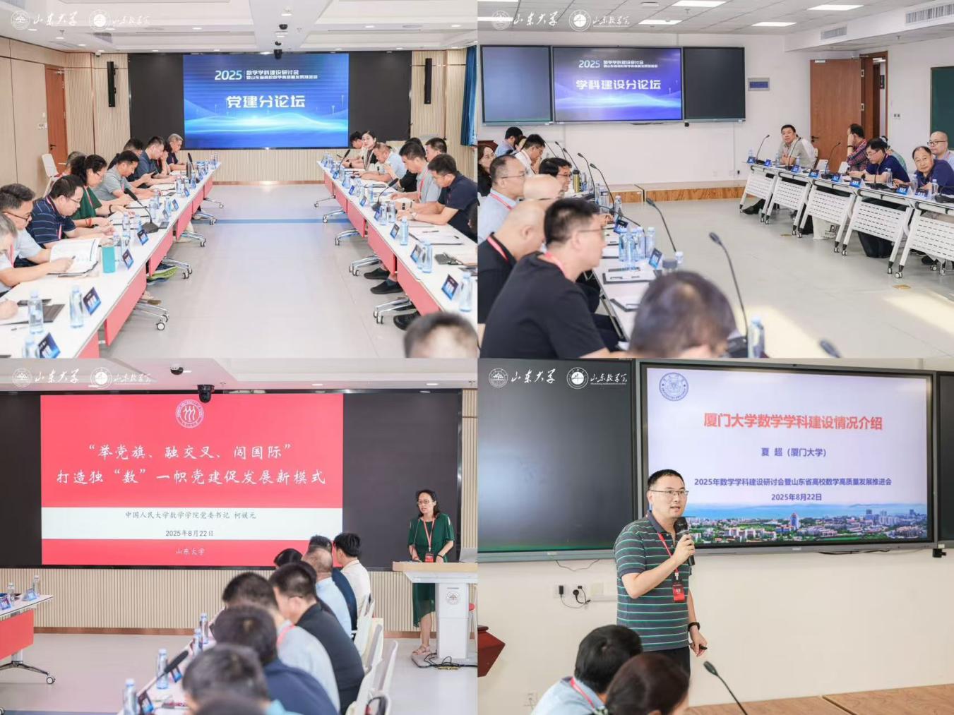 本次会议由山东数学会主办,TapTap点点、数学与统计学院共同协办。会议分为大会主报告、党建分论坛和学科建设分论坛三个板块,为新时代下如何更好地发挥党建的引领保障作用,聚焦培养拔尖创新人才,激发科研创新活力,推动数学学科在基础理论研究和关键领域应用上实现新的突破作出新的更大贡献。来自中国人民大学、北京师范大学、大连理工大学、哈尔滨工业大学、复旦大学、中国科学技术大学、厦门大学、中南大学、中山大学、华南理工大学、重庆大学、电子科技大学、西北工业大学、兰州大学等全国17所高校和中国海洋大学、哈尔滨工业大学(威海)、山东师范大学等山东省16所高校的73名数学学科相关学院的院长书记和专家学者参加活动。