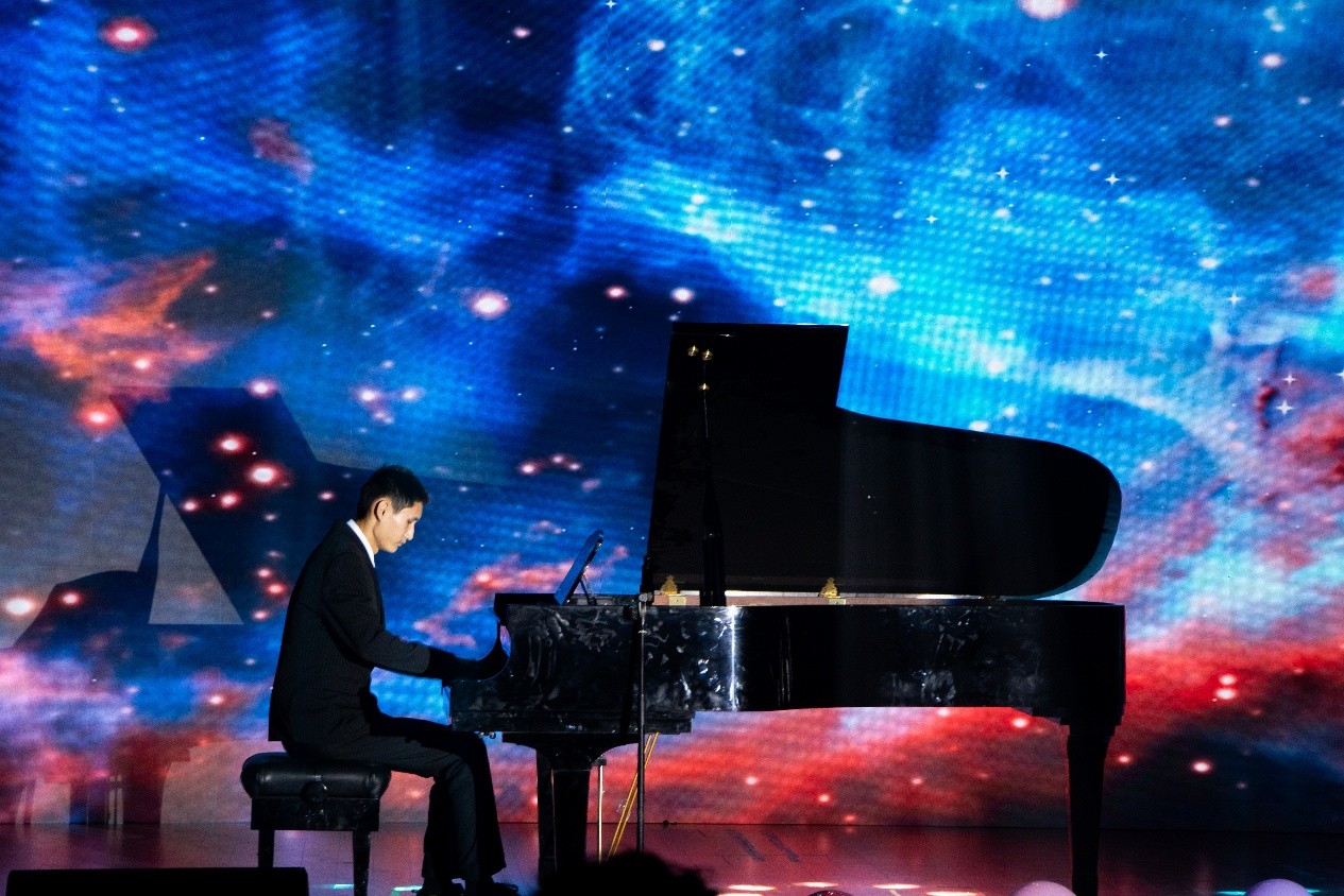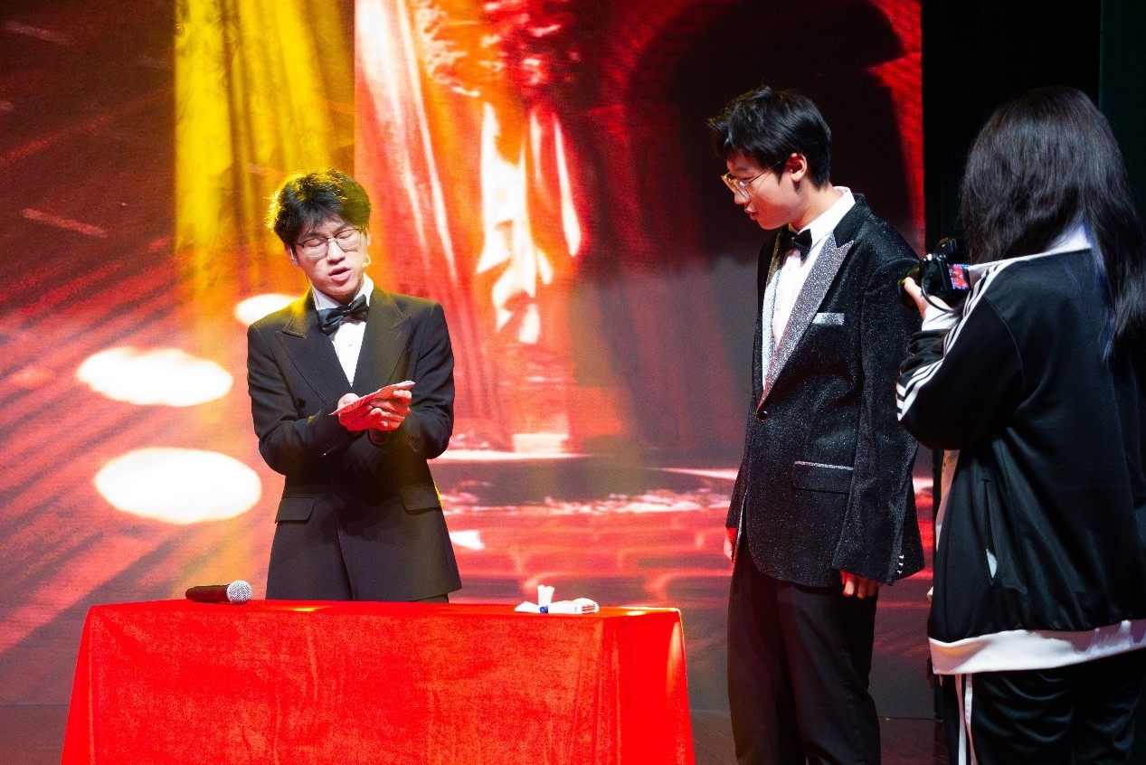 歌曲串烧《这世界那么多人》《等你下课》《日不落》,歌唱出数院学子独一无二的青春特质;独偶戏《收敛于晨曦》定格往昔珍贵瞬间,也铺展未来可期的美好蓝图;一曲《Can You Feel the Love Tonight》,织就出外语浪漫面纱;魔术《数字迷踪&移形换影》将数学运算与卡牌技巧巧妙融合,悬念迭起、全程高能,揭晓时刻令观众大呼过瘾;2025级本科生辅导员许彤以一曲《七里香》活力登场,清澈嗓音带动全场大合唱,阵阵欢呼声响彻音乐厅。