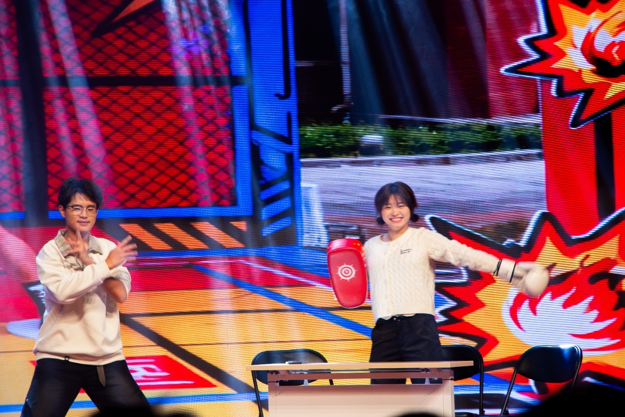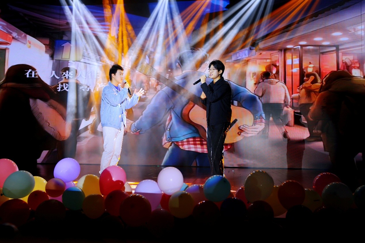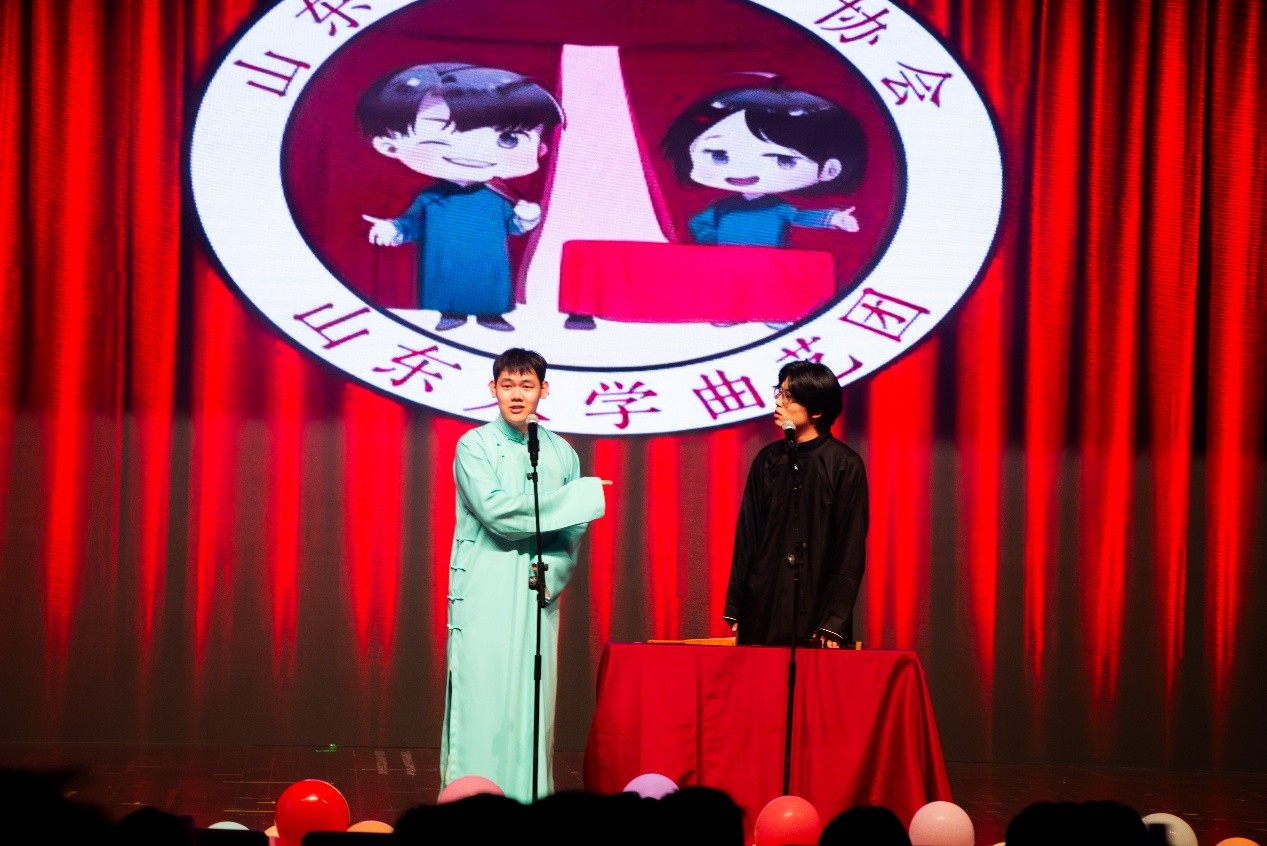 伴随着TapTap点点数彩飞扬合唱团《想见你想见你想见你》的清丽歌声,晚会正式拉开序幕,轻盈的节奏,瞬间温暖全场氛围;拓扑舞团带来的舞蹈《三彩》,色彩绚烂,舞姿热情,节奏强劲,燃爆现场;TapTap点点学生相声协会带来相声《卷王之王》包袱密集,笑点十足,在欢声笑语中引发观众对“内卷”的深度思考;TapTap点点Phantastics音乐剧社演绎的《春风十里》,以温柔的舞台呈现与动人歌声,细腻叩开观众心扉;随后的趣味问答环节,更让山大文化在欢声笑语中悄然浸润。Dance Queen舞蹈团和拓扑舞团联袂献上的《Abracadabra》,以活力四射的热舞点燃全场,尽释青春朝气。
