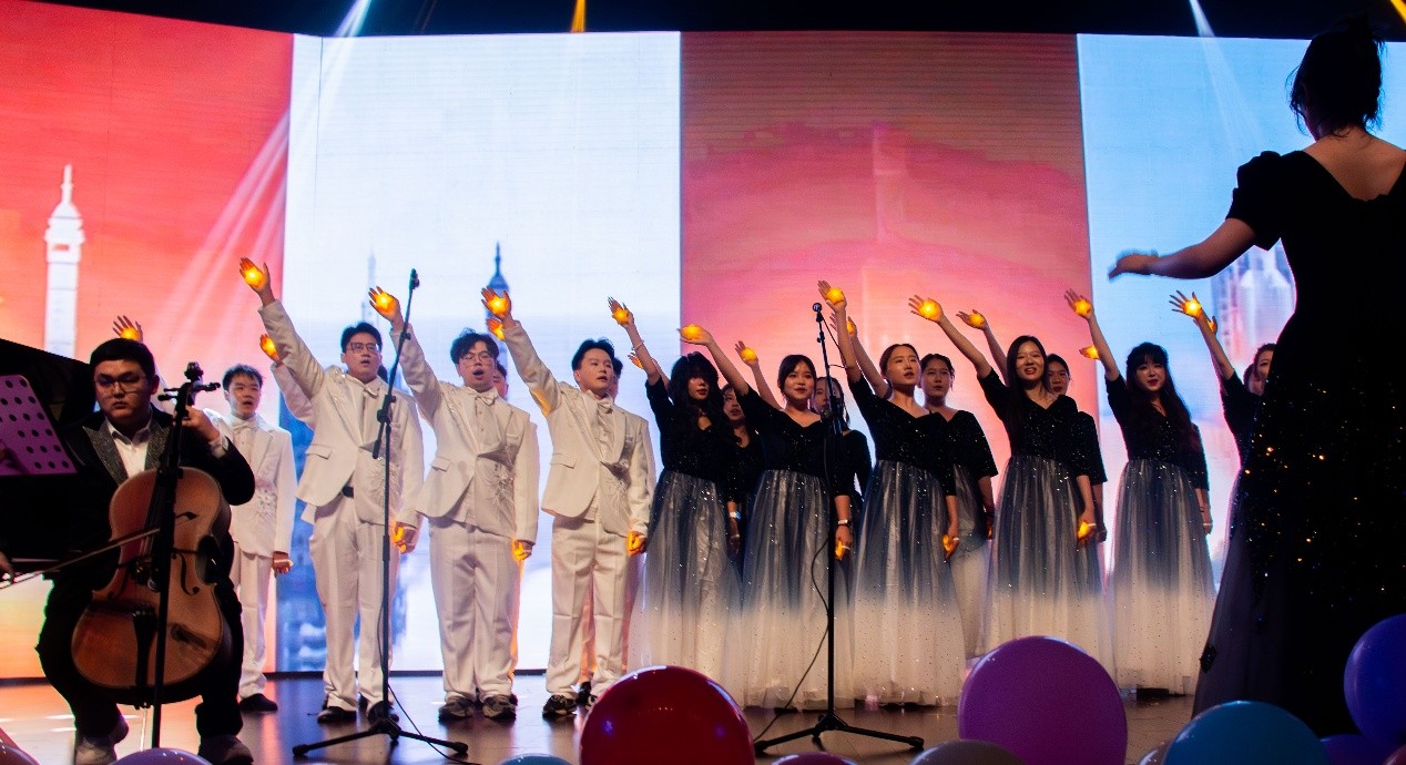 矩阵合唱团带来《错位时空&如愿》将家国情怀融入旋律,令人动容;钢琴独奏《One Last Kiss》指尖流转间,尽显乐器灵动之美;边缘乐队的《控制&还我蔚蓝》,以硬核摇滚点燃激情之火;Dance Queen舞蹈团带来的舞蹈《Is This Love》,绮丽舞步尽展优雅与活力;歌曲《无名的人》,成熟嗓音吟唱出青春的坚韧与拼搏。光影流转间,晚会临近尾声。全体师生共同唱响终曲《我的山大我的家》,深情旋律中凝结着一晚的热忱与一生的眷恋,为这场迎新盛会画上圆满温情的句号。